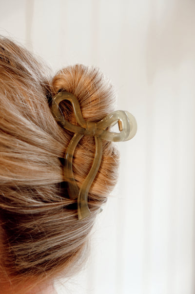 The Erin Green Bow Claw Clip will be a pretty and practical addition to your hair accessory collection. Not only will this claw clip look cute on your dresser, the acetate style features a secure crocodile snap closure making it the perfect hair accessory for all hair type. Sold individually.