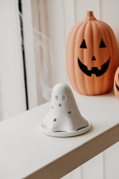 Ghost Halloween Autumn Incense Cone Burner / Tealight Holder
