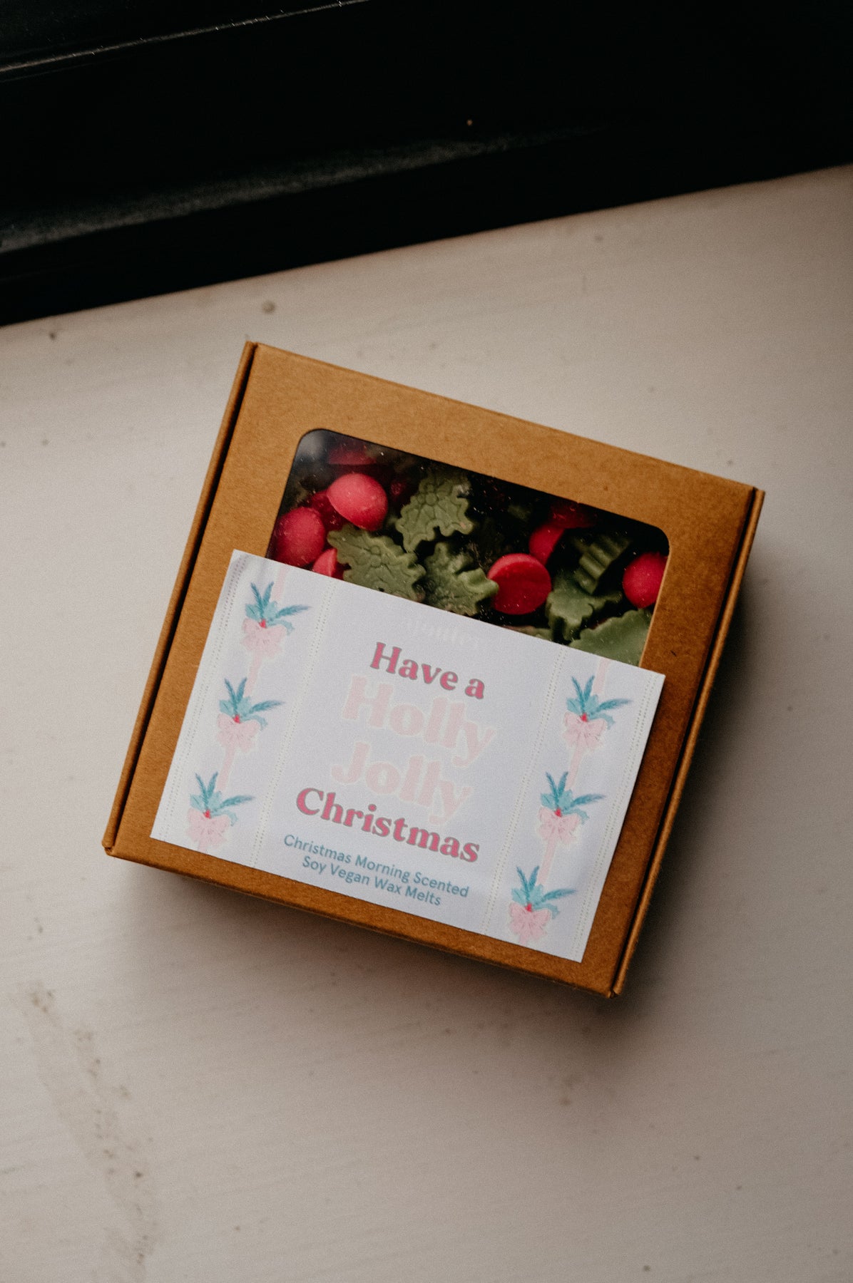 Complete your cosy decor with the Holly Jolly Shimmer Wax Melts. Expect sparkling clementine with warming cinnamon and balsam fir trees. Comes complete with a box.