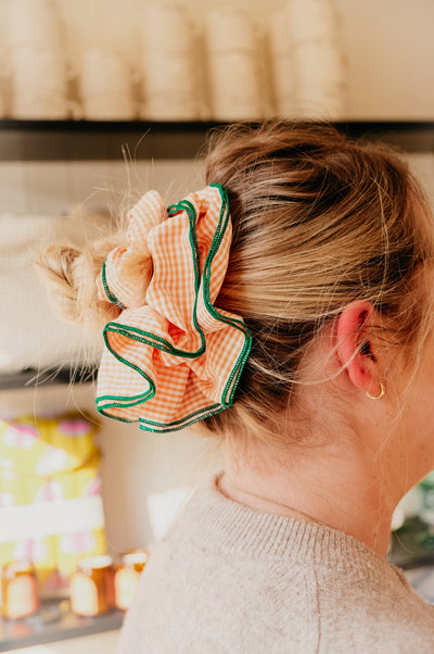 Add some extra volume to you up-do with the Dooses Market Stars Hollow XL Scrunchie. Made from cotton, the check base features two layers and a green trim.