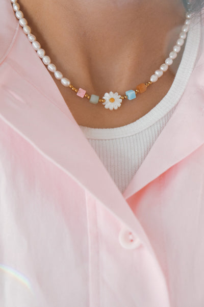 90s nostalgia all over with a touch of grown-up-ness. The Gala Flower Pearl Beaded Necklace and Bracelet set features coloured beads, pearls and an elegant gold-tone closure. Whether you are in the South of France or want an essence of sunny vibes everyday, this necklace and bracelet will be here for you. Sending this item as a gift? Your order will complete with an Ajouter branded dust bag.