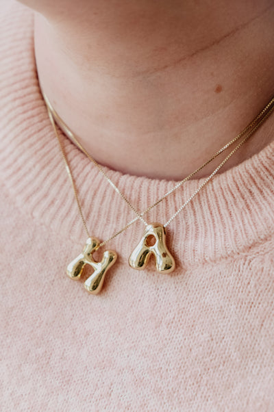 A playful and bold bubble letter that is balanced with an elegant chain. Whether it's your own initial or a loved one, the 14k gold plated necklace can be dressed up or down. Gifting this item? This necklace will come with a custom Ajouter dustbag.