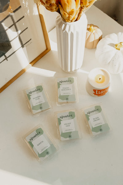 Creamy wax melts that are handpoured at Ajouter HQ. Select from a range  handpicked by our candle experts that will instantly add scent to your space.