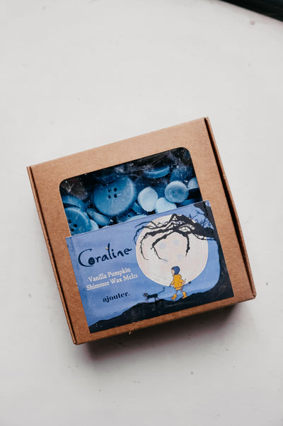 Escape to visit other mother and other far with our fave creepy girl Coraline. Expect a shimmery pool of fresh pumpkin, creamy coconut that is balanced with cinnamon, clove, maple and smoky bourbon. Pair with any of our melt burners.
