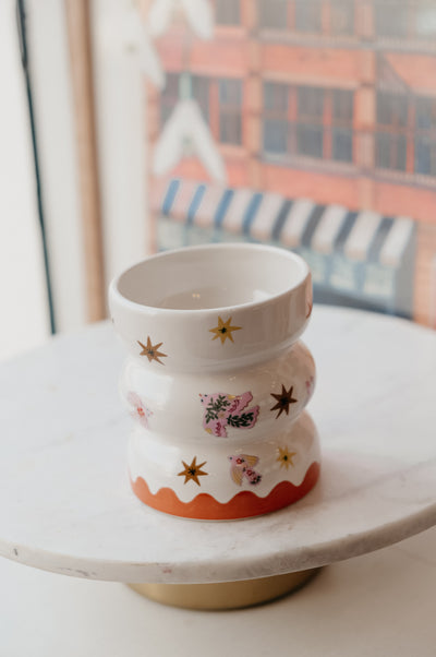 Take your morning sip with the 70s inspired Evie Bird Squeeze Mug. The handless mug features soft grooves for a easy grip.