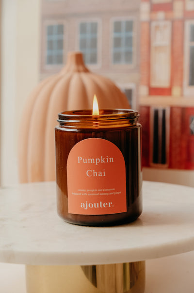 Cosy season is complete with the Pumpkin Chai Autumn Soy Wax Candle. Strike a match to creamy pumpkin and cinnamon balanced with autumnal nutmeg and ginger.