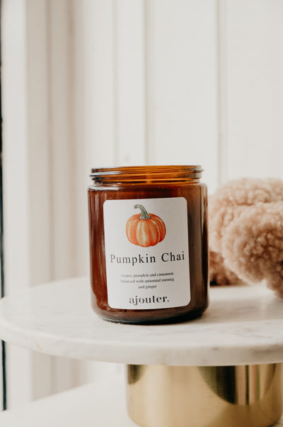 Strike a match and set a cosy mood with the Pumpkin Chai Soy Wax Handmade Candle. Expect creamy pumpkin and cinnamon balanced raspberry and blackberry. Comes complete with an Ajouter dustbag.