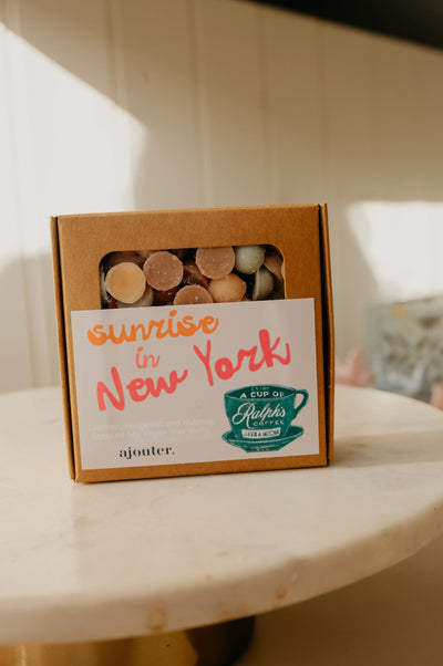 Shimmer like a NYC sunrise Put a few melts into a melt burner of choice and let your space be scented in a luxury fresh scent. Made from 100% soy wax.