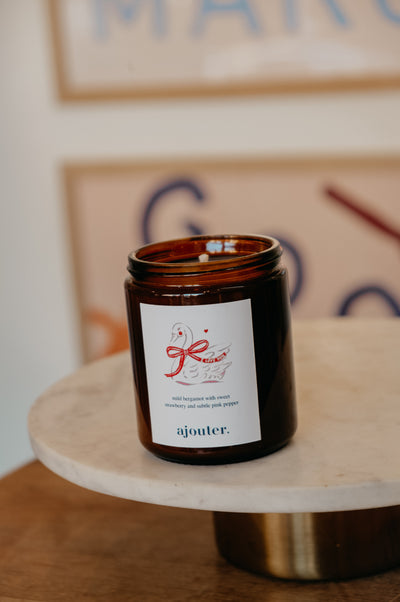 Strike a match to love season with Swan Bow Soy Wax Candle. Expect mild bergamot with strawberry and subtle pink pepper.