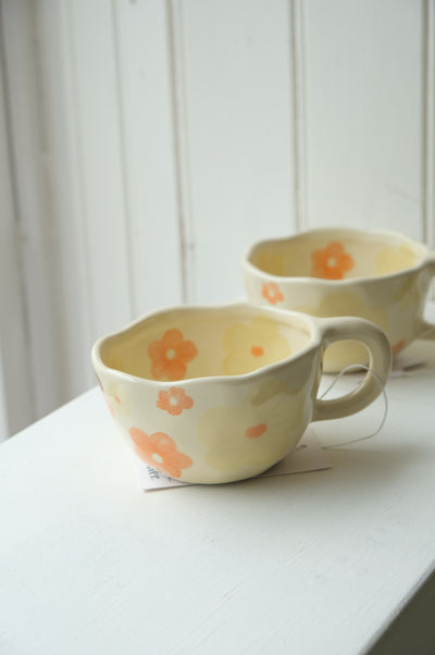 Kiti Irregular Hammered Yellow and Orange Flowers Mug