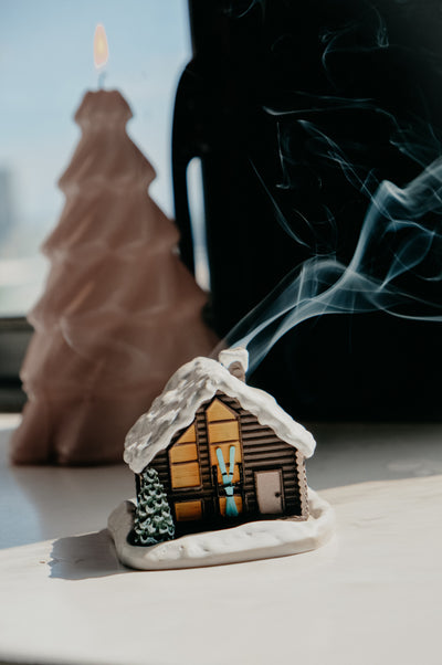 Log Cabin Ski Snowy Winter Incense Cone Burner