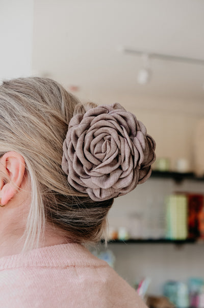 Romanticise every outfit with the Alysa Teddy Brown Rose Claw Clip. The lightweight soft flower is complete with a secure tortoiseshell claw clip. Also available in other colours.