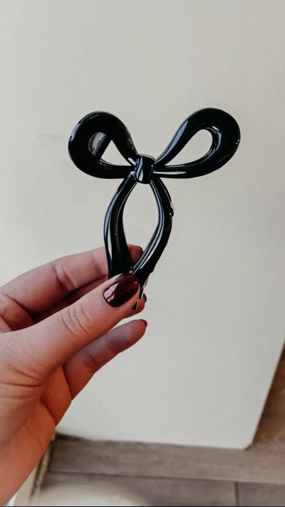 The Erin Black Bow Claw Clip will be a pretty and practical addition to your hair accessory collection. Not only will this claw clip look cute on your dresser, the acetate style features a secure crocodile snap closure making it the perfect hair accessory for all hair type. Sold individually.