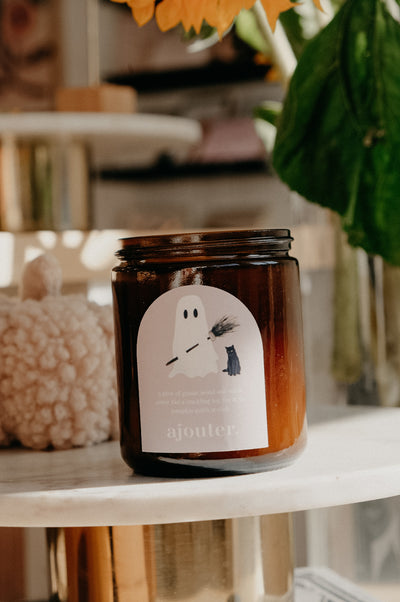 Cosy season is complete with the Ghost Log Fire and Pumpkin Halloween Autumn Soy Wax Candle. Strike a match to a glow of guaiac wood and warm amber crackling like a log fire at the pumpkin patch.