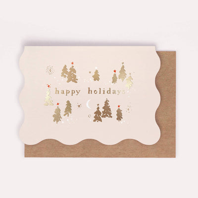 Happy Holidays! Send festive wishes with the Happy Holidays Trees Christmas Greetings Card Enter a gift message at checkout (that will be printed onto the card) or opt for blank card