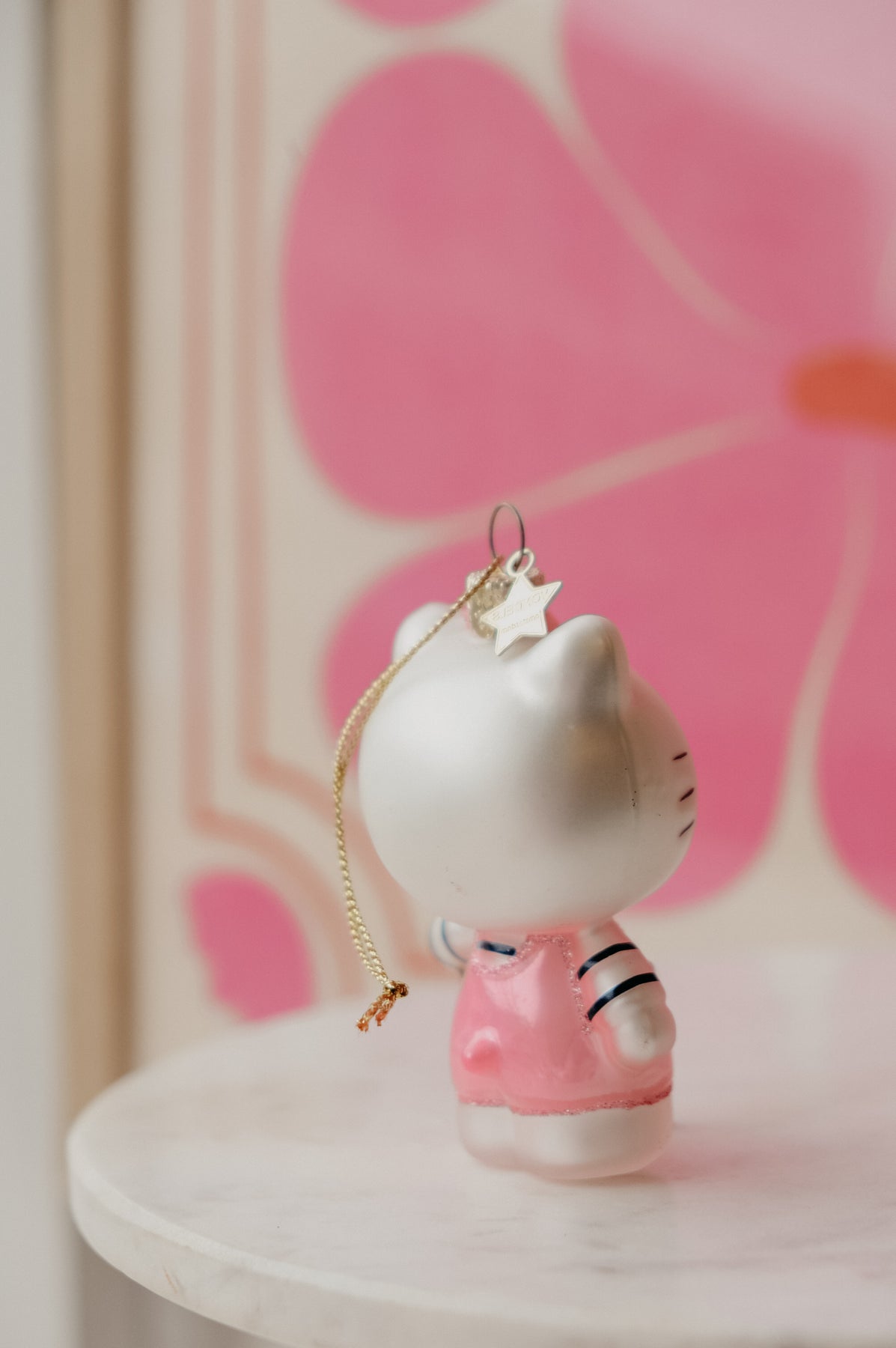 Cue cuteness vibes all over with the Hello Kitty  Stripe Top with Bear Glitter Glass Ornament . The glass ornament features our girl in a stripy top, pink dress holding a teddy bear. Whether as a valentines, galentines or to show your self some love, this will be a gift to cherish.